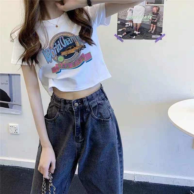 100%纯棉超火短款设计感显瘦修身露脐高腰性感短袖T恤女学生上衣热门设计联盟服务商